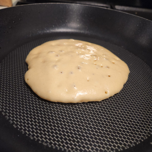 When small bubbles form in the batter, flip the pancake. It should be a light golden brown.